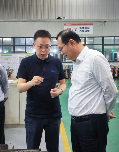 陳主席一行首先參觀了公司自動化生產(chǎn)車間,周光榮董事長向陳主席詳細(xì)介紹了公司的生產(chǎn)經(jīng)營情況,展示了公司在新能源汽車零部件、工業(yè)機器人、精密精齒、MIM(金屬注射成型)精密零部件、增材制造(3D打印)等項目開發(fā)的一系列新品。