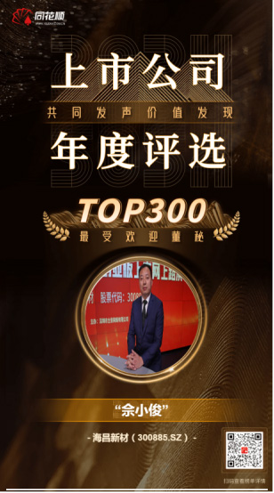 熱烈慶祝海昌新材(300885.SZ)榮獲 “上市公司年度評選最具人氣公司”獎項