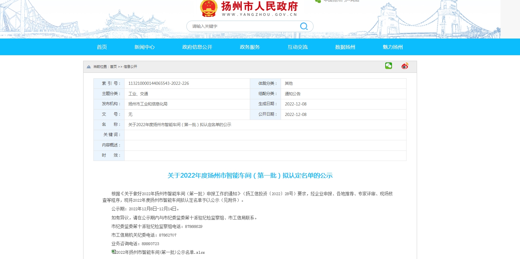 熱烈慶祝海昌新材入選2022年度揚州市智能車間 (第一批)名單2022-12-19閱讀數:2337